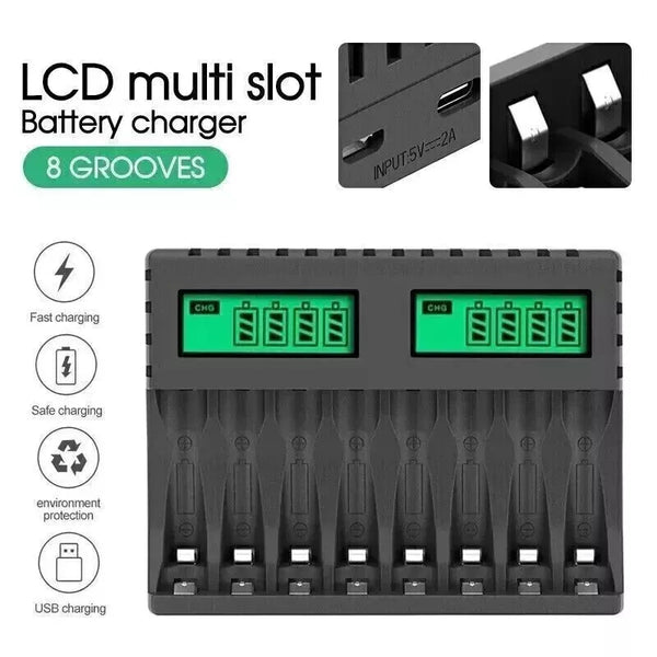 13127 Merge Smart Battery Charger 8 Slots Rechargable For AA/AAA/C/D LCD Display X131