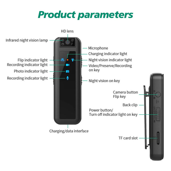 Mini Body Camera HD 1080P IR Body Camcorder Audio Video Recorder With Bracket.