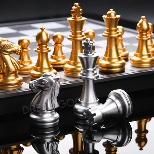 Large Chest Board Set Folding Gold And Silver Magnetic Chessboard.