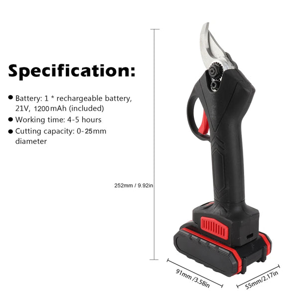 Cordless Rechargable Electric Pruning Shears Secateur Branch Cutter +2 Batteries.