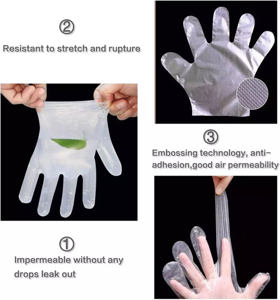 600 PCS Disposable clear Plastic Gloves Latex Free Powder Free Polyethylene Hand 0282.