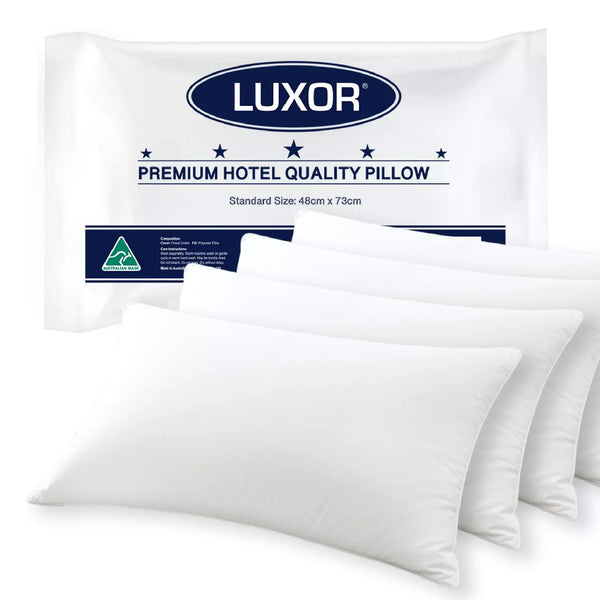 Australian Made Luxor 4 Pack Hotel Quality Pillows Standard Size.