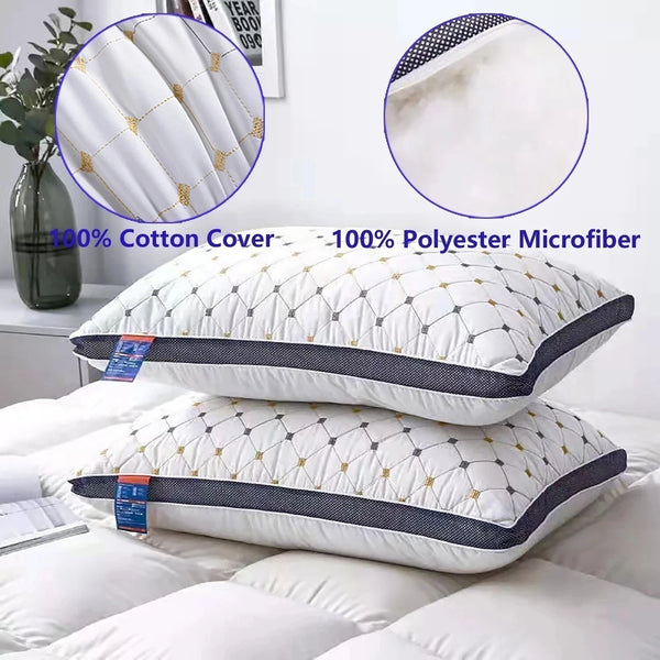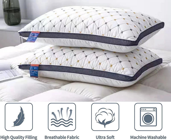 2-Piece Pack Hotel Quality Pillows Checked Ultra Plush Home Bed Standard Pillows.