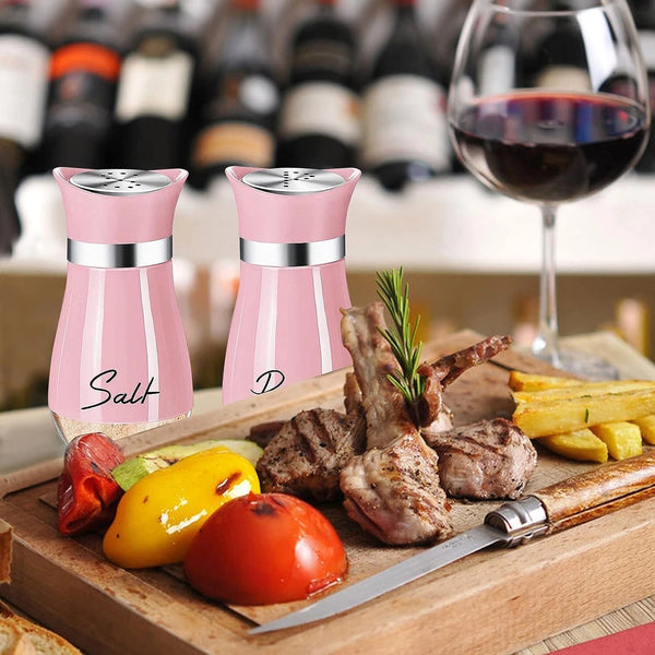 Brand New Salt And Pepper Shakers Set Premium Stainless Steel Set Pink.