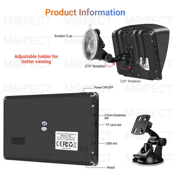 7" Car Truck Sat Nav GPS Navigation 8GB Free Lifetime World Maps Touch Screen.