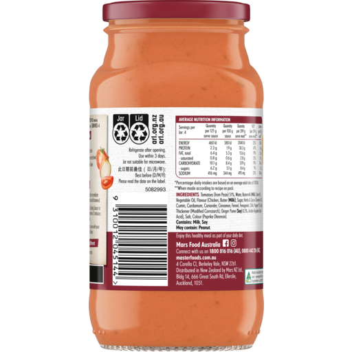 Masterfoods Butter Chicken 485g-505g Cooking Sauce.