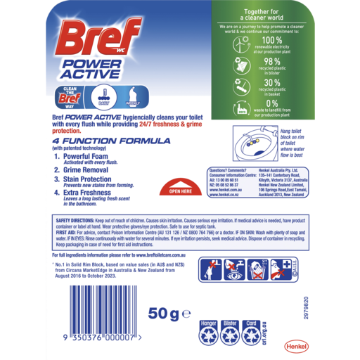 Bref Power Active Lemon In Bowl Toilet Cleaner 50g