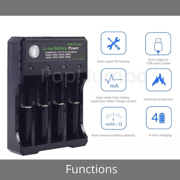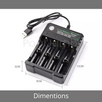 4 Slot USB Battery Charger For Li-ion 18500,18350,14500 Batteries Portable.