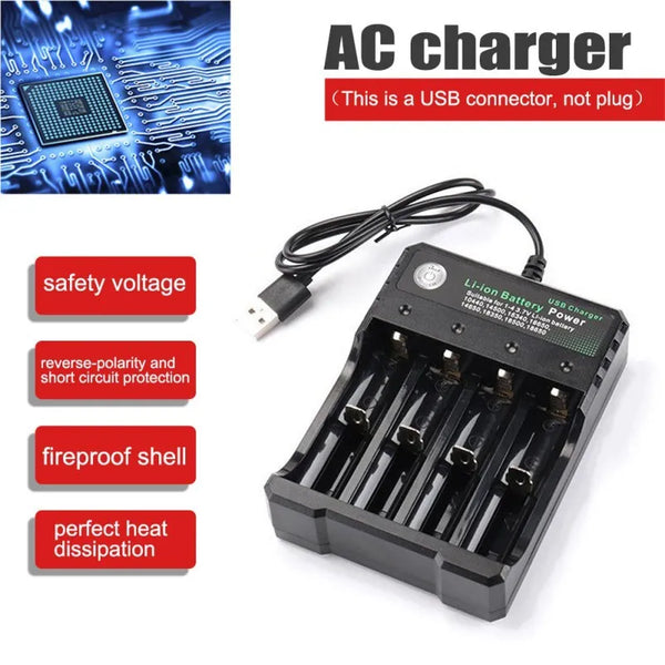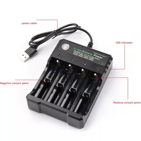 Multi Battery Charger Smart 4 Slots For Rechargeable Li-ion Fast Charger USB Charging Base.